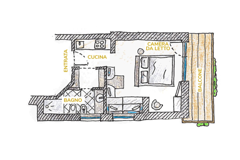 - Monolocale con angolo cottura attrezzato con piano cottura in vetroceramica, microonde, lavastoviglie, frigorifero e macchina da caffè